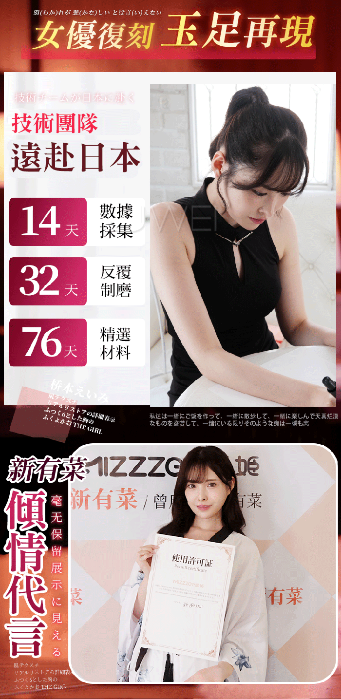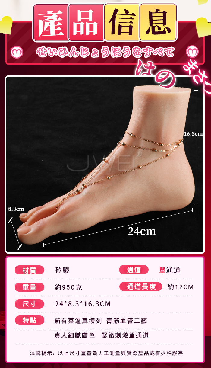 ►您現在的位置:首頁>謎姬 MizzZee.橋本有菜 玉足.真美足 1:1仿真尺寸 青筋皮紋細節復刻 逼真陰部內置龍骨 雙色單穴自慰套【左腳】