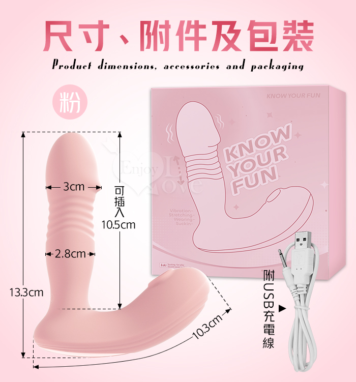 ROSELEX 勞樂斯 ‧ 識趣 10變頻伸縮+震動/吮吸內外齊歡智能加溫按摩器 - 可手機APP遙控﹝具兩種操控模式﹞粉色