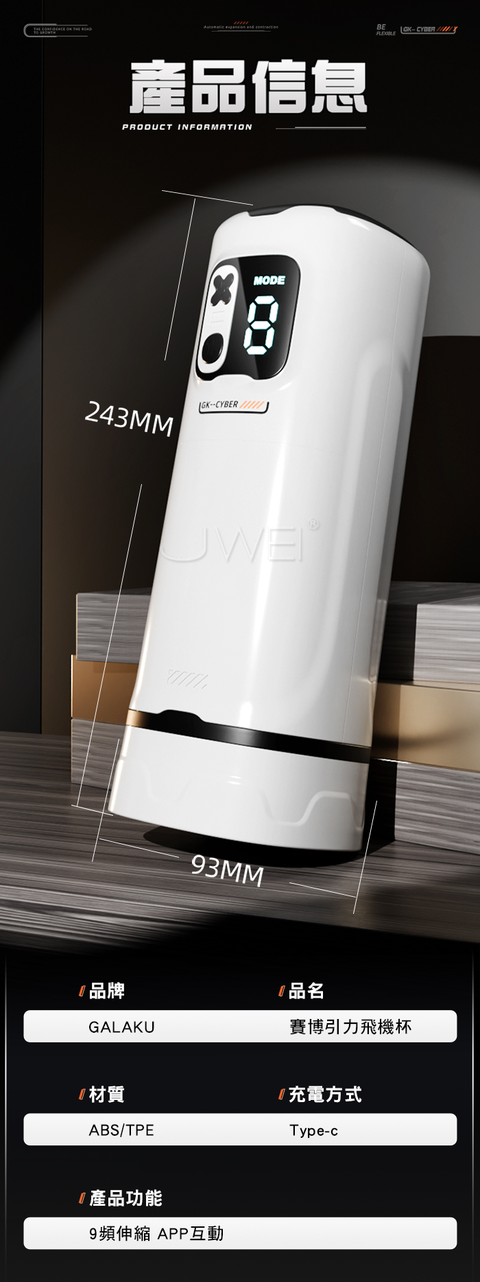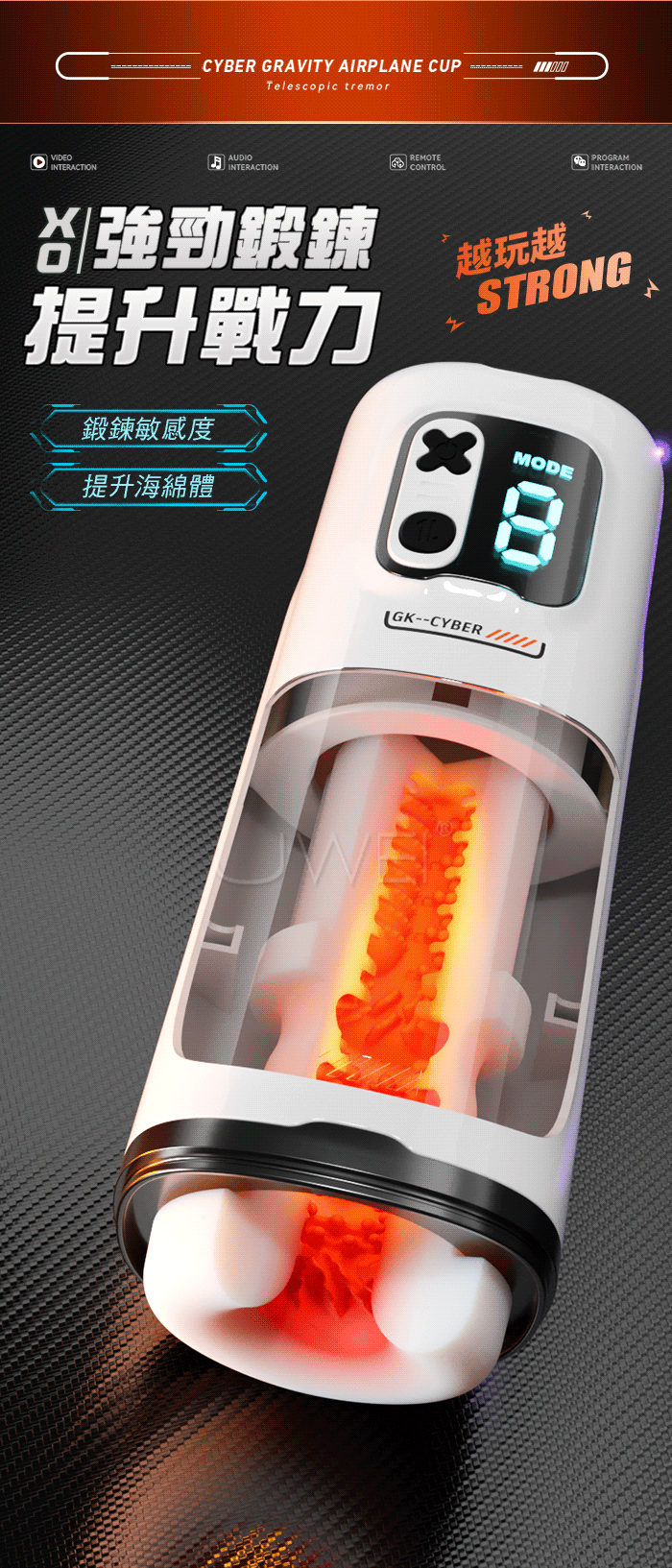 賽博引力飛機杯,40MM長距伸縮,創新黑科技,功能集結注定不凡! 不看小電影,也能玩!開關/10頻震動 伸縮10頻,自動夾吸 收縮包裹從頭擼到根~ 强勁鍛錬 提升戰力,鍛錬敏感度 提升海綿體,漩渦虹吸肌是,每一秒都不一樣 產品規格 ■材質: 矽膠+ABS ■規格: 詳如圖片標示 ■功能: 9頻伸縮、APP智控