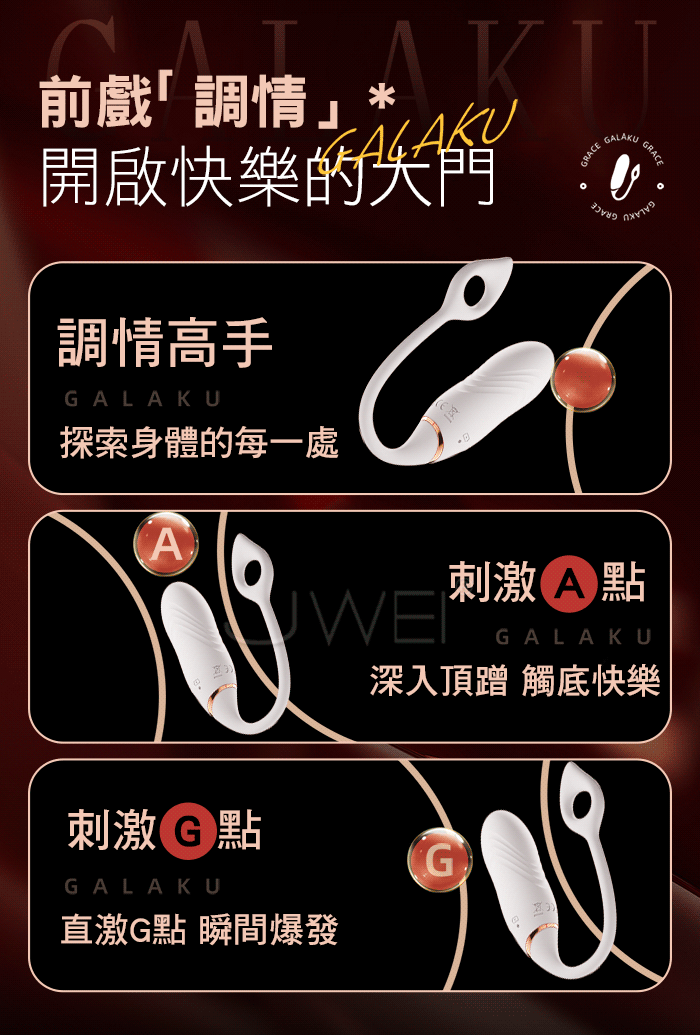 ►您現在的位置:首頁>GALAKU.格蕾絲 10段多重強震3段全自動靈活伸縮 智能遠控潮玩跳蛋【白色】