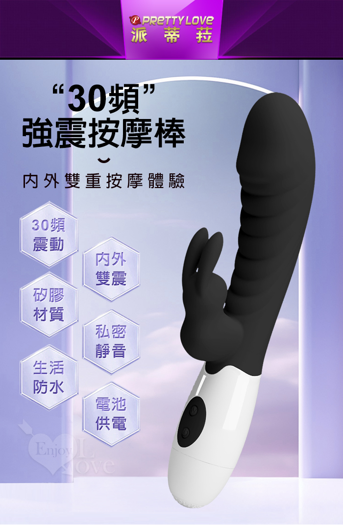 PRETTY LOVE 派蒂菈 ‧ 頑皮兔 內外雙重30頻雙頭同震按摩棒-黝黑