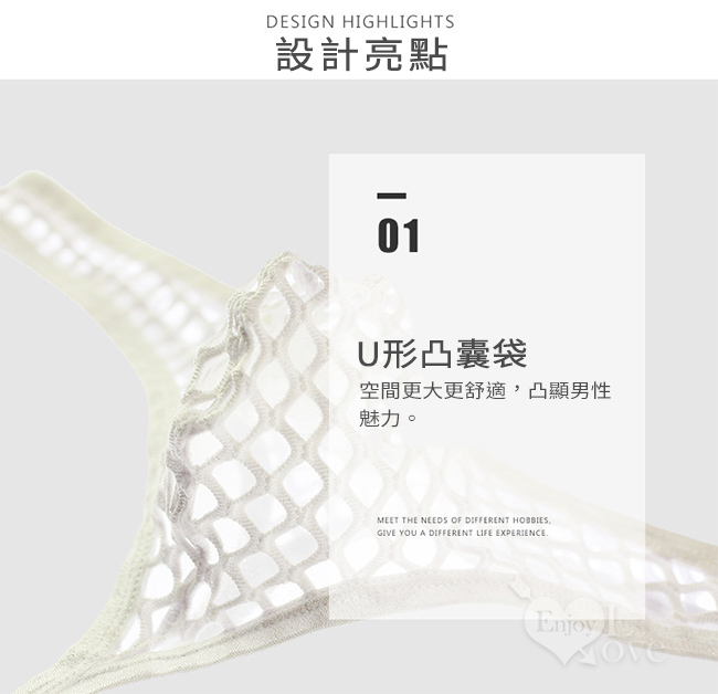 | 《 Enjoy Love 》性感半透大網孔男士丁字褲 - 白﹝S﹞