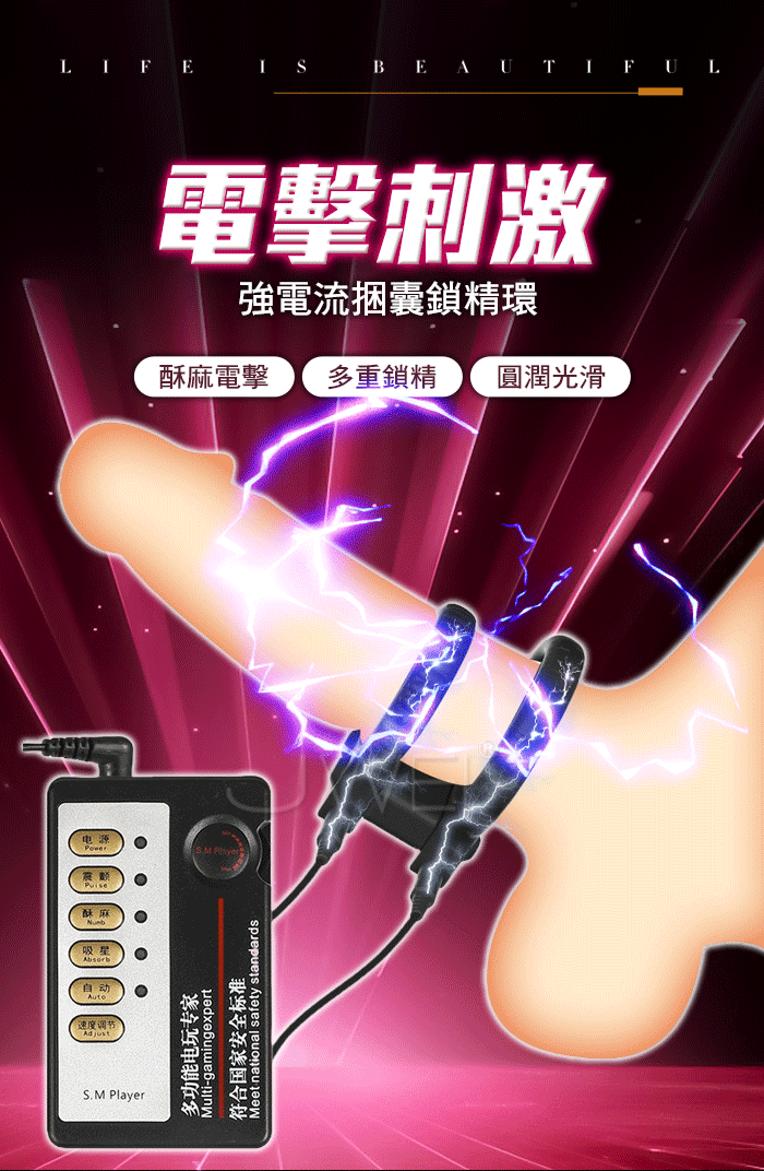 | Electric shock脈衝電擊.10級強度微電流電擊刺激 多重鎖精加時性愛鎖精環【中文主機+電擊鎖精環】