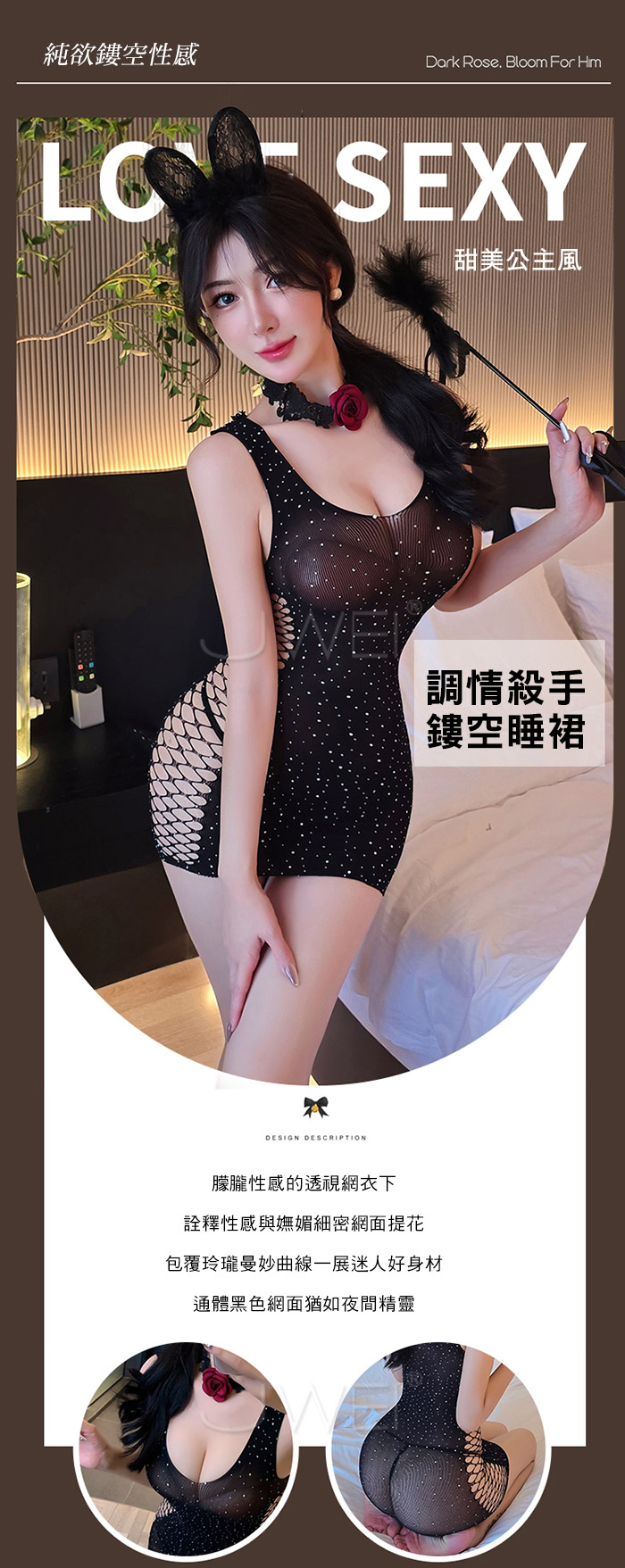 ►您現在的位置:首頁>耀眼甜心.甜美公主風朦朧鏤空透視包臀網衣