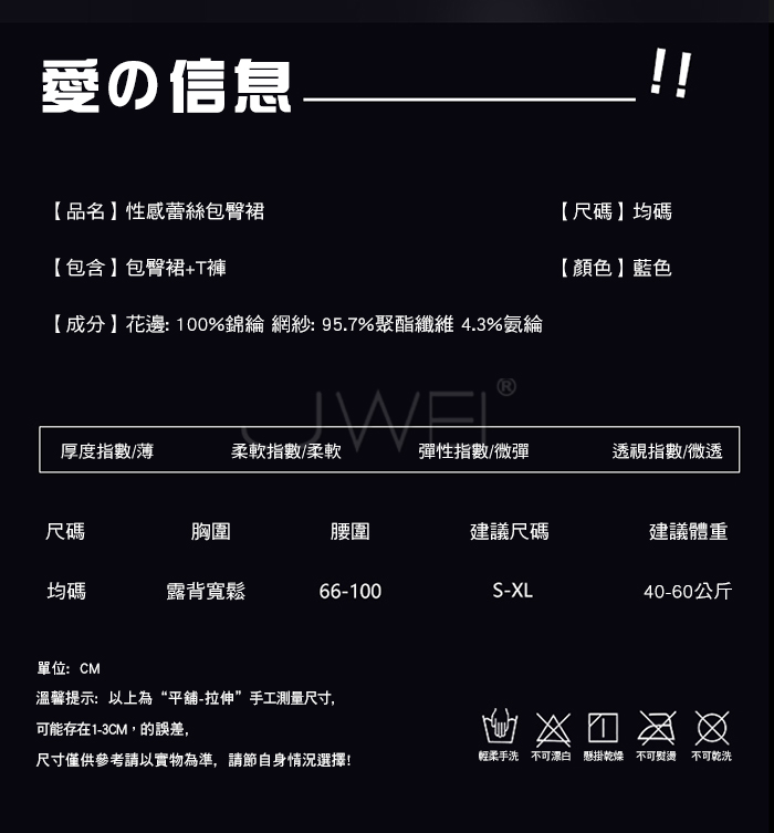 2.基於保障消費者個人衛生,情趣衣物類恕不接受退換貨,如為商品本身暇疵,接受三日內換貨,請勿試穿。