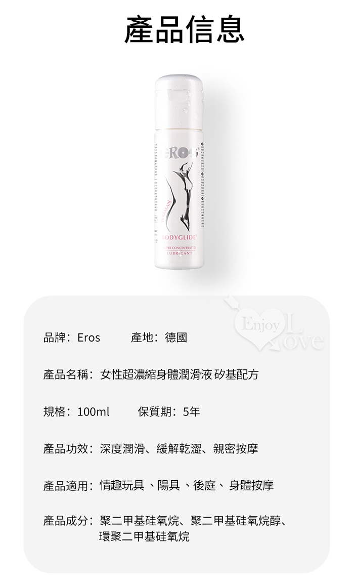 德國Eros ‧ 女性超濃縮身體潤滑液 矽基配方~適配乾性及敏感性肌膚~ 100ml