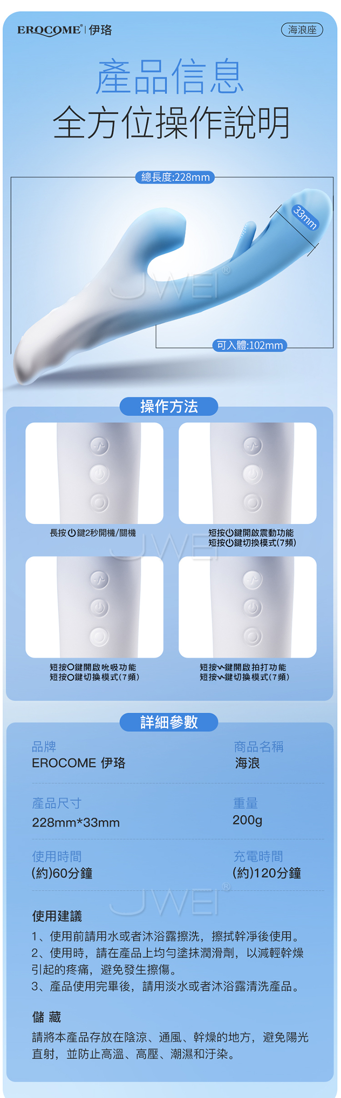 EROCOME伊珞.OCEAN Wave 海浪座 7頻吸撩拍打震 三點齊爽摳G按摩棒