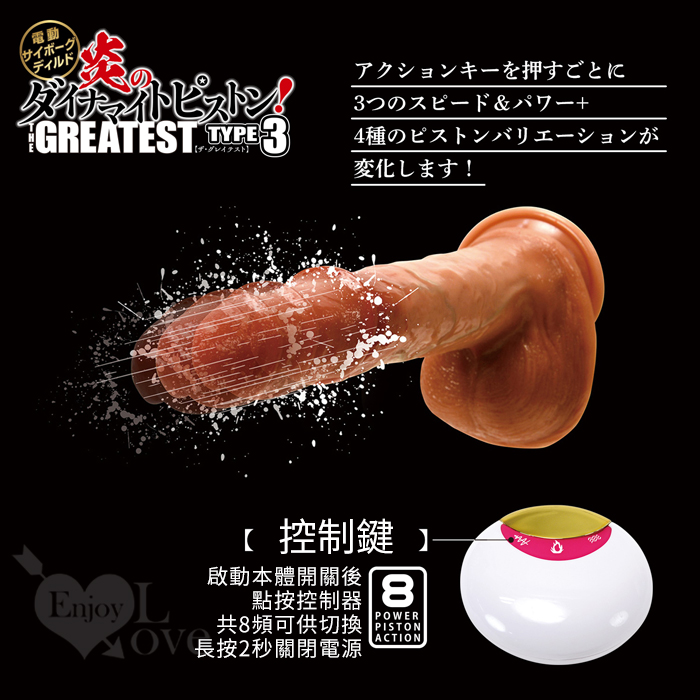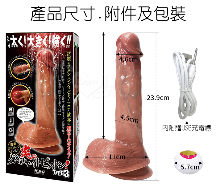 | 日本NPG ‧ 炎のダイナマイトピストン 特大極太逼真8頻活塞伸縮震動智能加溫大老二棒-可無線遙控