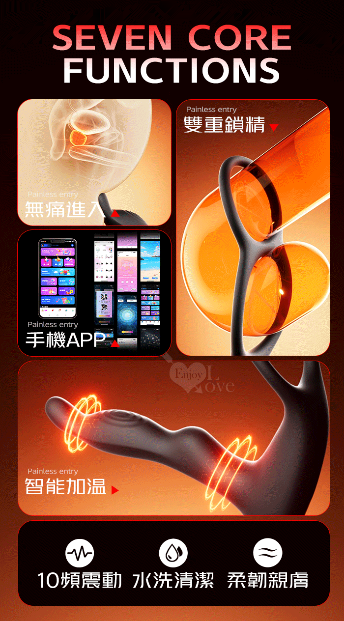 ROSELEX 漸入前列腺 10段變頻雙環鎖精三點激震精準觸腺後庭加溫按摩器/可手機APP遙控