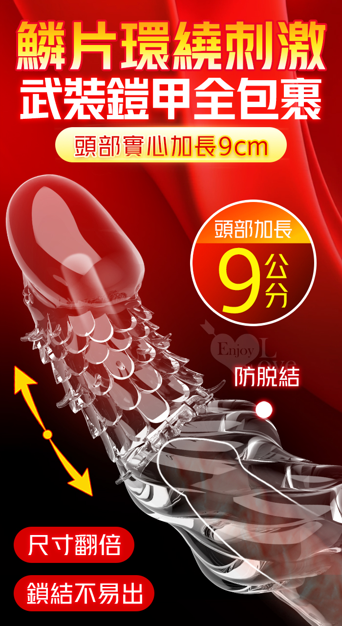 | 取悅 ‧ 龍結套 龍麟刺激~長時堅挺`前端實心變粗變大加強套﹝增長9公分+凸粗+束精+套蛋﹞