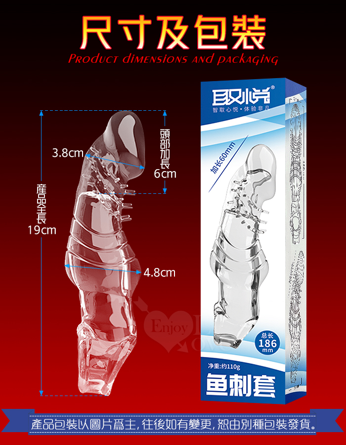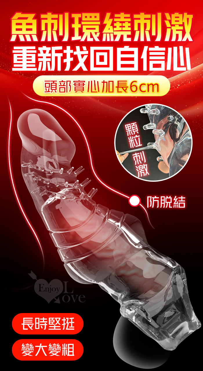 | 取悅 ‧ 鱼刺套 顆粒刺激~長時堅挺~前端實心變粗變大加強套﹝增長6公分+凸粗+束精+套蛋﹞