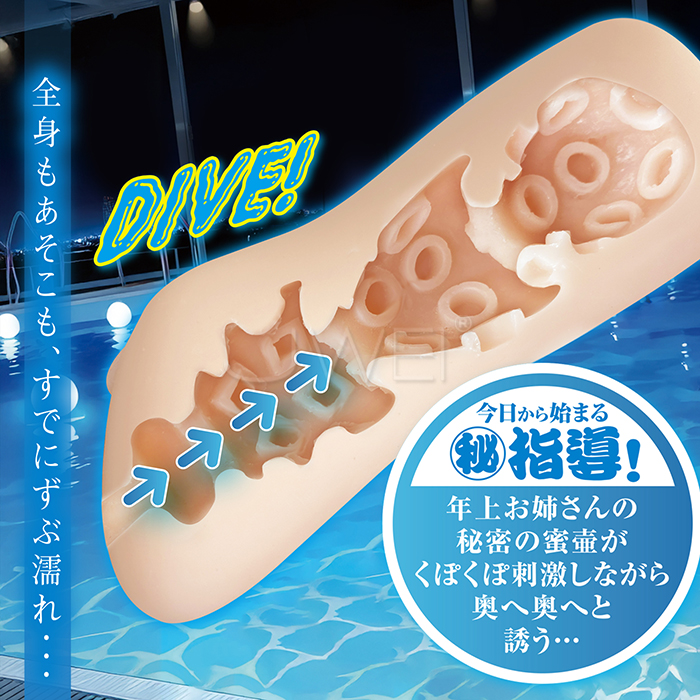 深夜のプールで、二人だけの特別なレッスンが、いま始まる・・・ 今日から始まる、あなたへだけのマル秘指導。 全身もあそこも、すでにずぶ濡れ・・・ 年上のお姉さんの個人レッスンに、あなたの理性は即崩壊! 【內部形狀】 しっとりと吸著する蛸壺形狀。全體にくまなく吸いつきながら、あなた自身をコリコリと翻弄。 蜜壷が奧へ奧へと誘いながら、くぽくぽ刺激。 ●包裝尺寸(mm):160×80×70 ●重量:196g ●材質:TPE