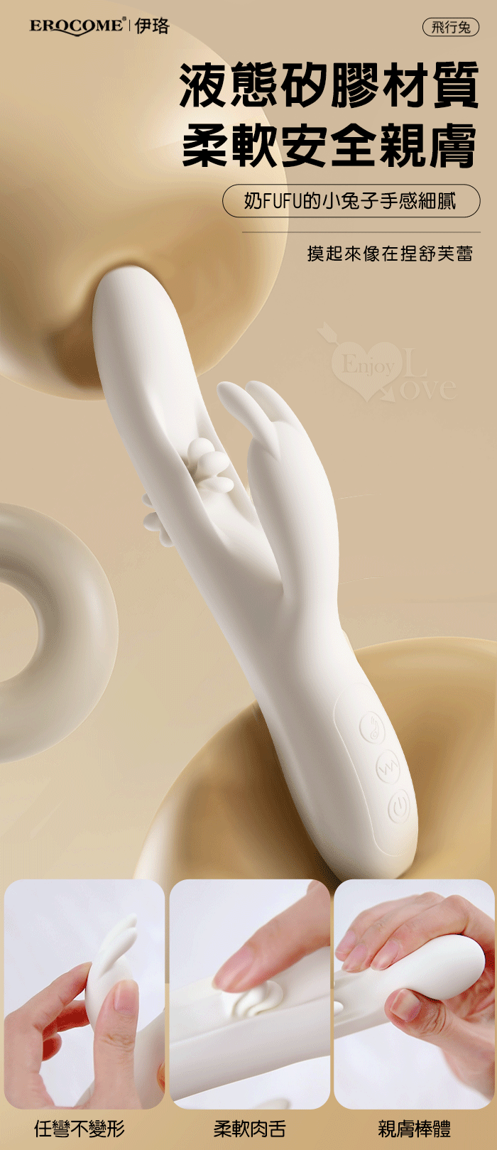 EROCOME伊珞.Flying Bunny 飛行兔 10x10頻飛輪軟舌兔耳震動拍打雙震加溫3合1按摩棒