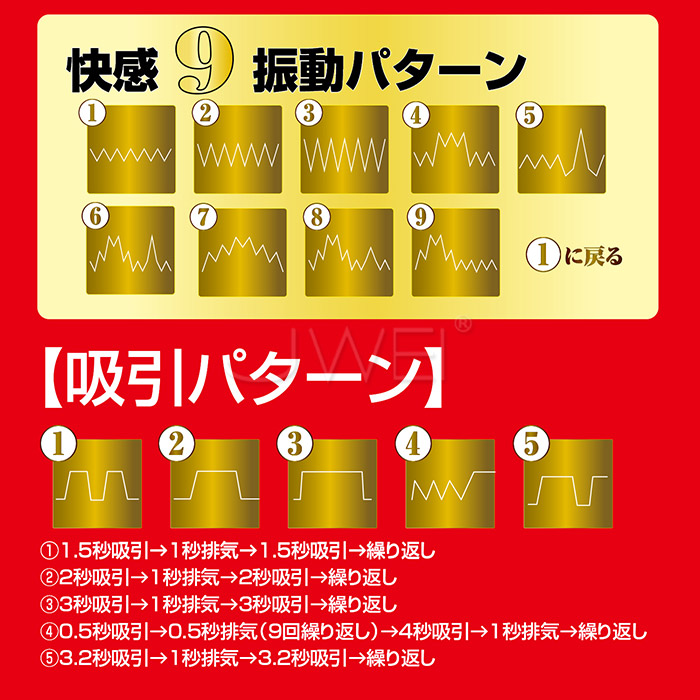 五種吸啜和九種震動,不同組合不同刺激,配合大量肉粒,在強大的吸力下體驗被萬千肉球包裹和磨擦的快感,酥麻的震動刺激更讓肉粒像活了過來一般,在你巨龍上拍打,要將你的精液通通搾出!