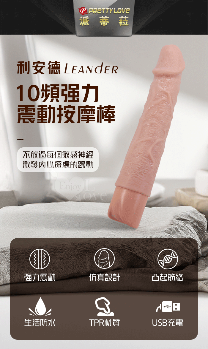 派蒂菈 ‧ Leander 利安德 10段變頻震動 膚色肌仿真筋絡老二造型充電按摩棒﹝NO.1/7.9″ 20cm﹞