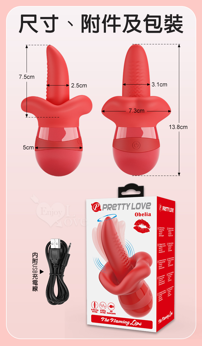 派蒂菈 ‧ Obelia 奧貝利亞 10頻巧舌红唇360°狂擺+10頻震動按摩器﹝軟糯Q彈材質+USB便捷充電﹞