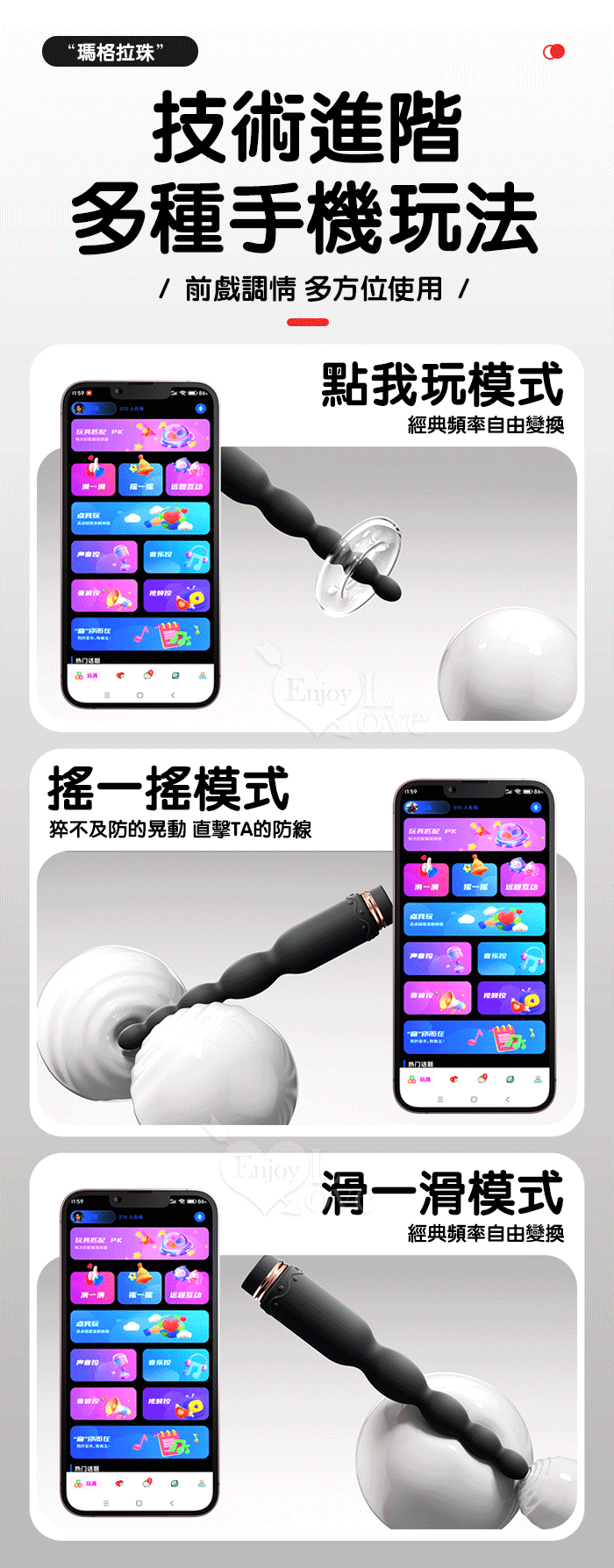 ROSELEX 新手玩家 瑪格連環拉珠按摩棒~10頻強勁震動/細小易入/男女通用/可手機APP遙控