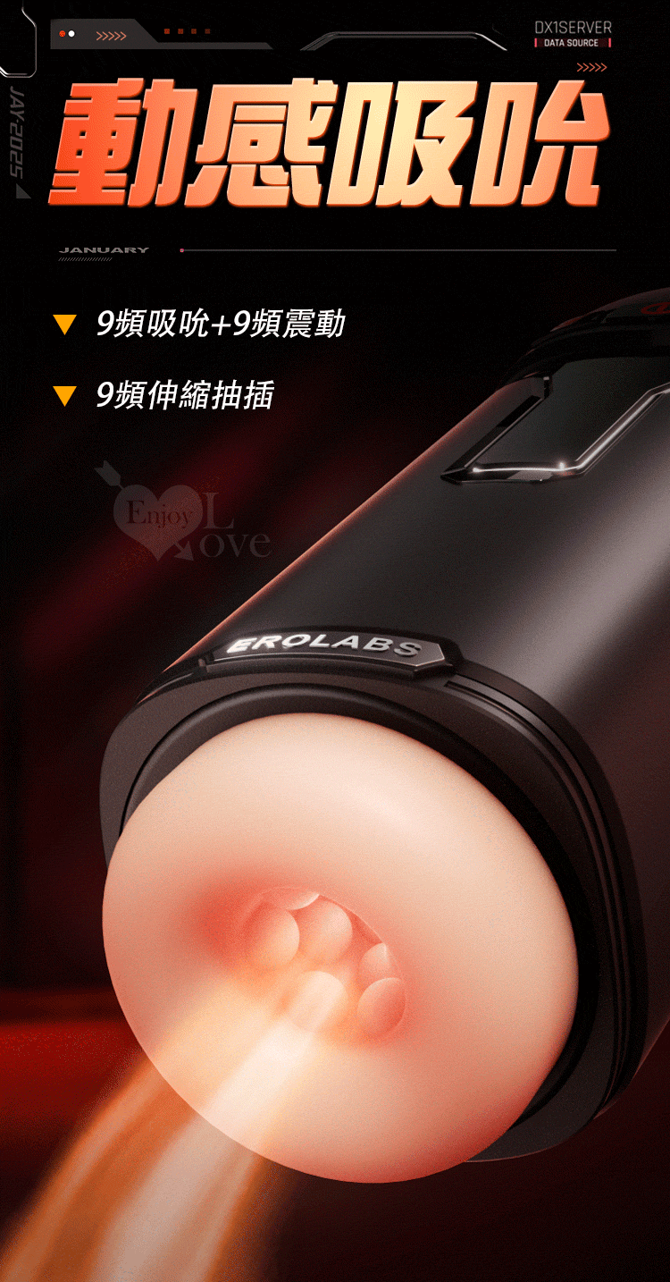 EROLABS 擼霸全配版 ‧ 智能伸縮/吸吮/震動/語音 緊實肉感自慰鍛練杯﹝液晶數碼9頻伸縮X9頻吸吮X9強震+4國淫聲+耳機﹞白色
