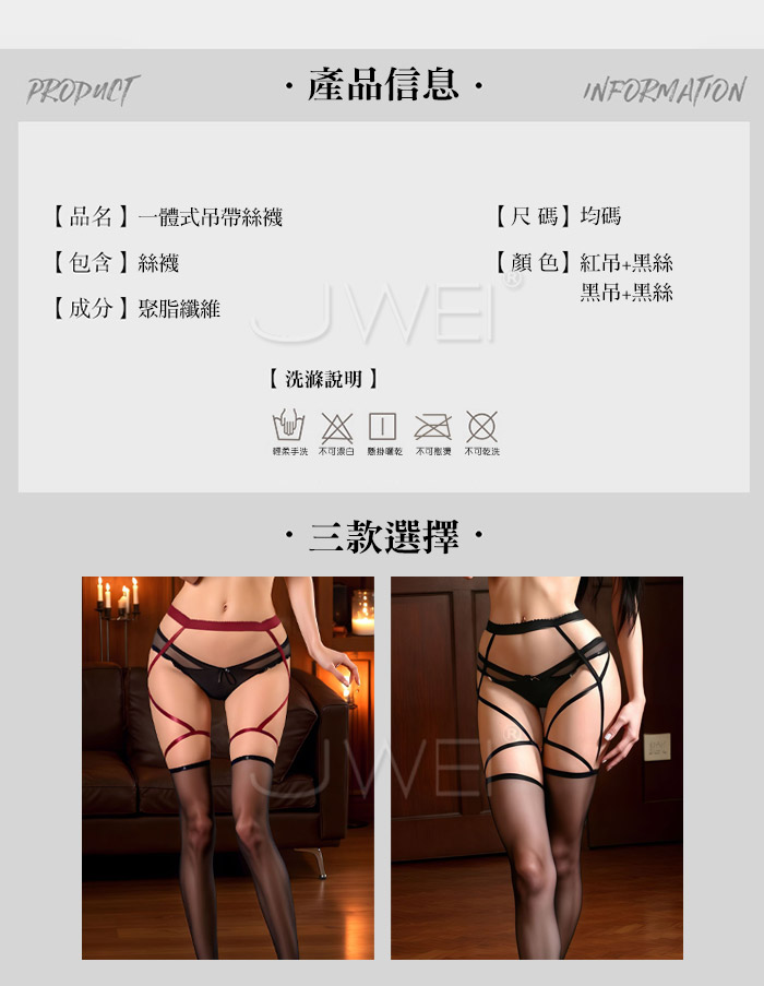 | 情慾物語.交錯織帶一體式吊帶透膚啞光絲襪【黑色】