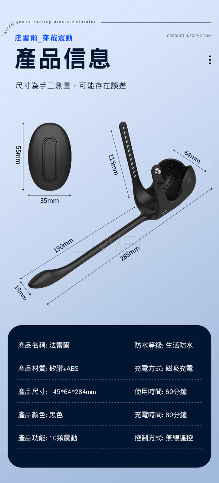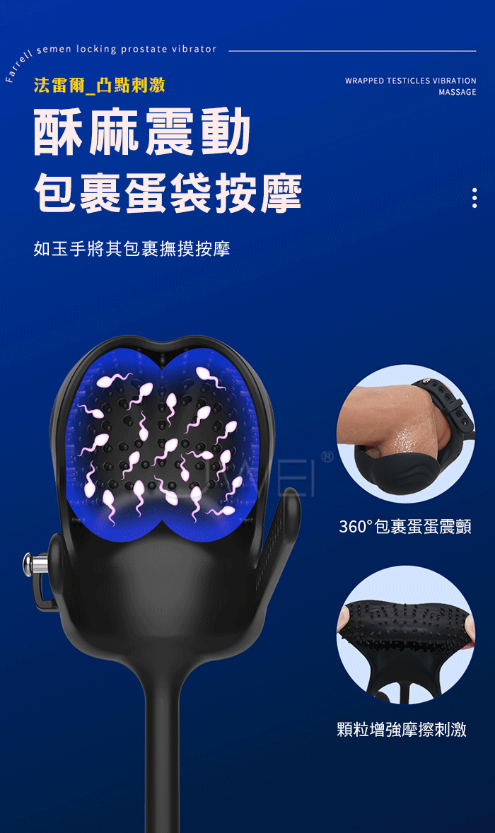 ►您現在的位置:首頁>法雷爾.10頻遙控強震刺激 360度包覆蛋蛋 顆粒增強無射快感 束精穿戴前高按摩器