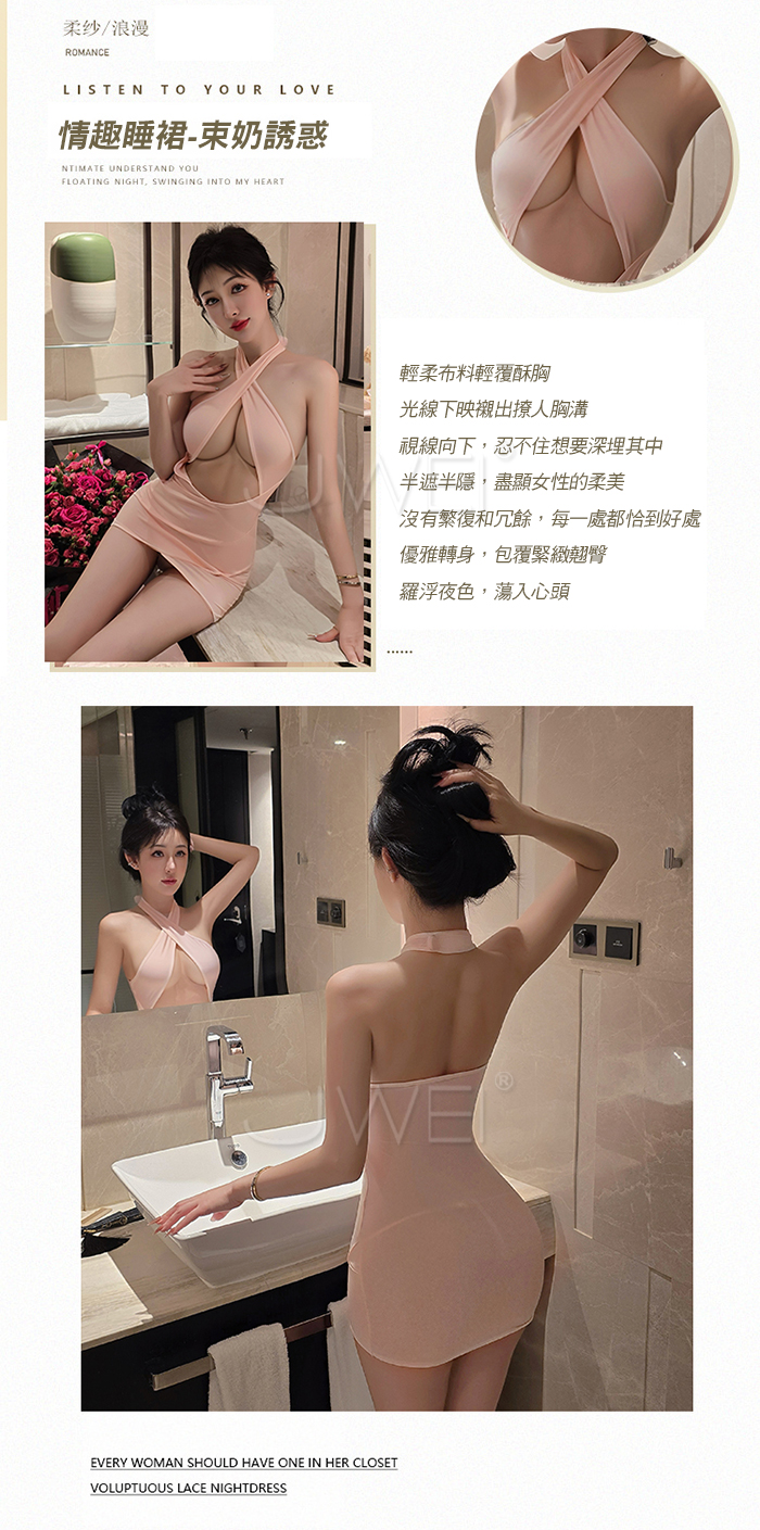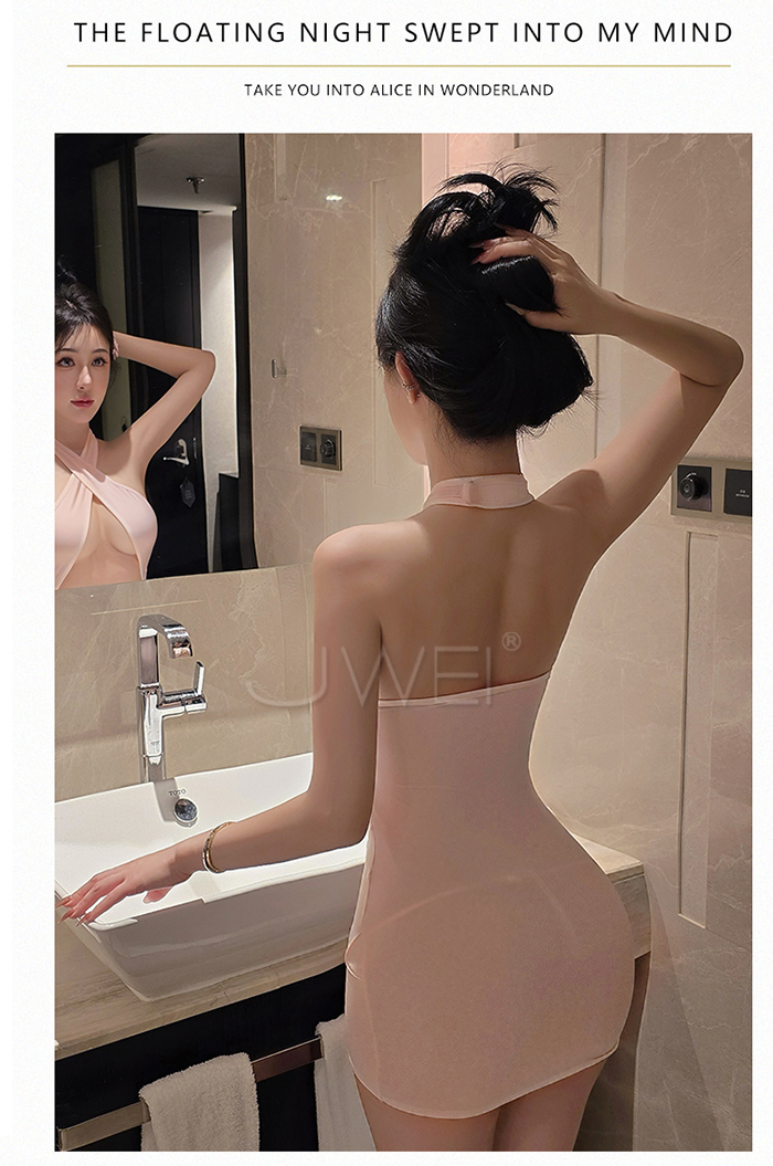 | 護士角色扮演服!挖空爆乳掛脖十字比基尼高衩連身裙吊襪帶五件式套裝