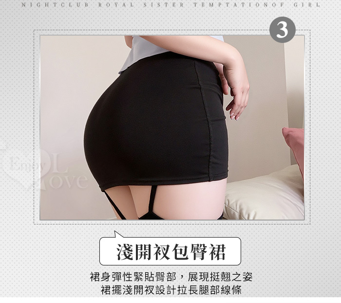 | 教官角色扮演服!俐落挺版側開衩微傘擺短襯衫高腰包臀裙四件式套裝