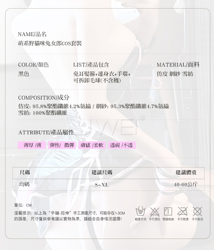■內容物:免耳髮箍+連身衣+手環+可拆卸毛球